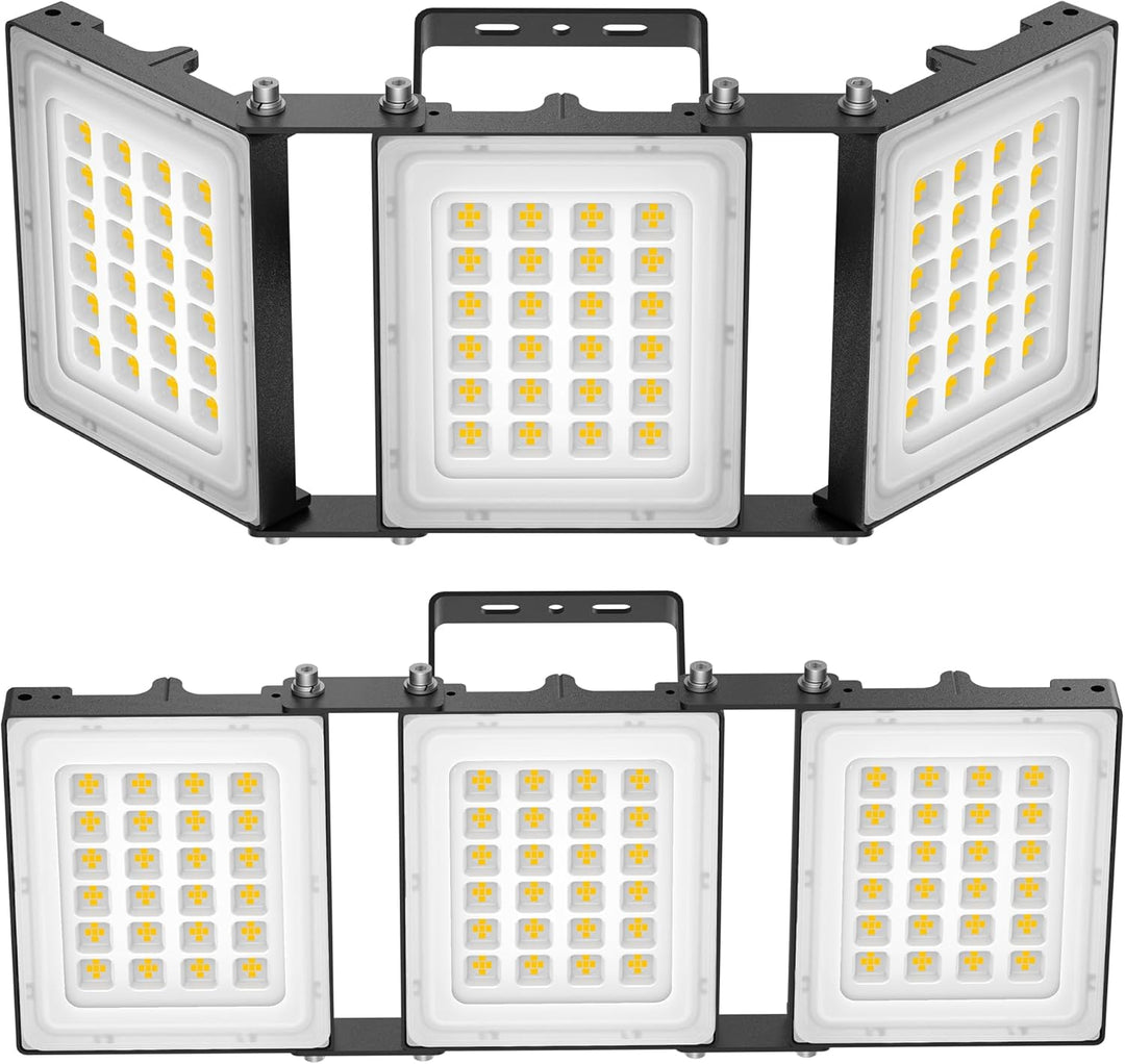 480W 2 Pack LED Outdoor Flood Light, 48000LM Super Bright Stadium Light, 6000K Daylight White, IP66 Waterproof 3 Heads Adjustable Outdoor Floodlights for Patios, Street, Parking Lots