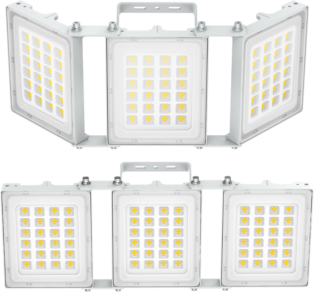 300W 2 PACK LED Outdoor Flood Light, 30000LM Super Bright Stadium Light, 6000K Daylight White, IP66 Waterproof 3 Heads Adjustable Outdoor Floodlights for Backyard, Court, Garden