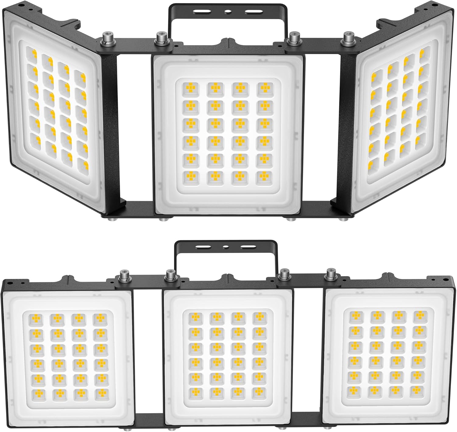300W 2 Pack LED Outdoor Flood Light, 30000LM Super Bright Stadium Light, 6000K Daylight White, IP66 Waterproof 3 Heads Adjustable Outdoor Floodlights for Backyard, Court, Garden