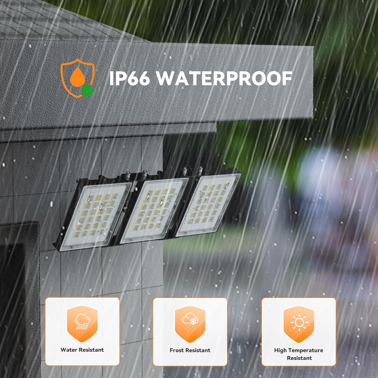 • Long Lifespan and Weather Resistance: With upgraded materials, our floodl ights feature an IP66 waterproof rating, making them fully resistant to all weather conditions, delivering reliable and consistent illumination in any environment