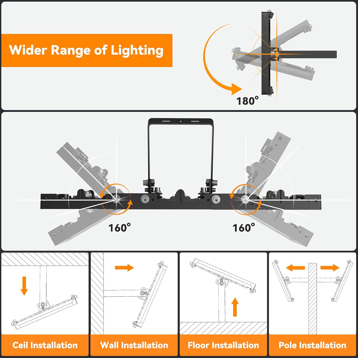 • Exclusive Design: LED Flood light Hardwired features a unique 3-in-1 wire connector for quick and easy installation. Adjustable brackets allow for 180° vertical and 330° horizontal rotation, giving you full control over your lighting direction